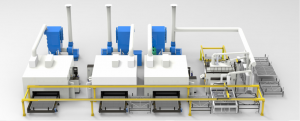 (3)加工模式:自動輸送式噴砂+自動交換雙平臺+自動桁架式上下料+四軸專用機械手自動噴涂(上下料時不停噴槍,機械手采用圖形模式規劃噴涂路徑)